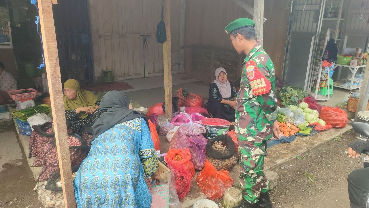 Sidrap, 10 November 2025 – Babinsa Koramil 1420-03/Maritengngae, Kopka Darwis, melaksanakan kegiatan pemantauan ketersediaan dan harga bahan pokok di Pasar Sentral Pangkajene, Kecamatan Maritengngae, Kabupaten Sidrap pada hari ini. Kegiatan ini bertujuan untuk memantau stabilitas harga dan memastikan ketersediaan bahan pokok yang terjangkau bagi masyarakat, serta mengantisipasi potensi masalah yang dapat mempengaruhi daya beli masyarakat.