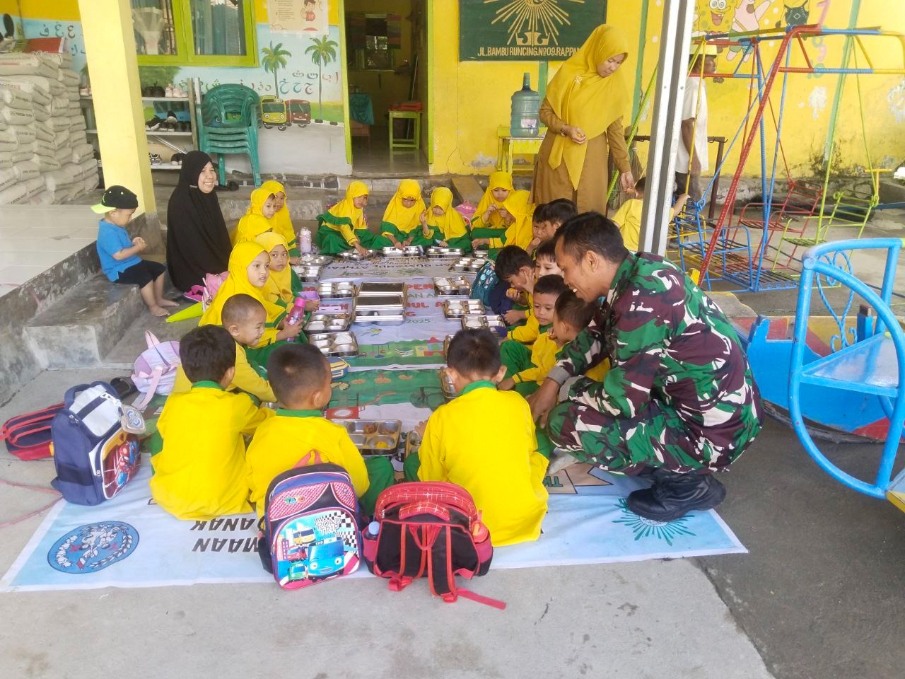SIDRAP – Babinsa jajaran Kodim 1420/Sidrap menunjukkan sinergi aktif dengan Pemerintah Kabupaten Sidrap dalam menyukseskan pelaksanaan program pemerintah pusat, yaitu Program Makan Bergizi Gratis (MBG). Pendampingan ini dilaksanakan serentak Selasa, 28 Oktober 2025.