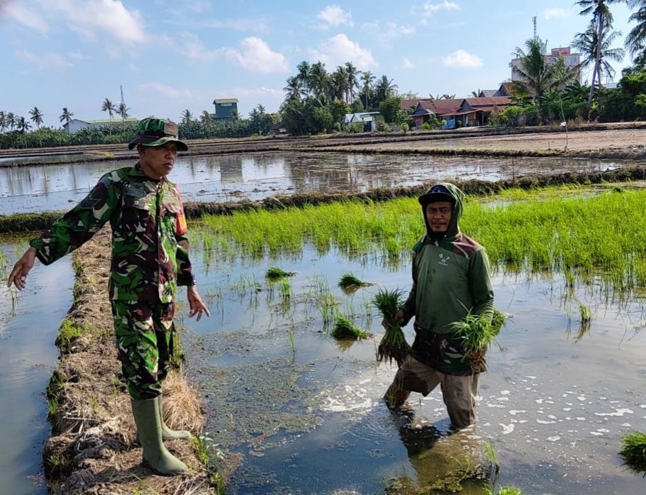Dukung Swasembada Pangan, Babinsa Serma Nursalam Dampingi Petani Laksanakan Pemeliharaan Tanaman Padi di SidrapSidenreng Rappang