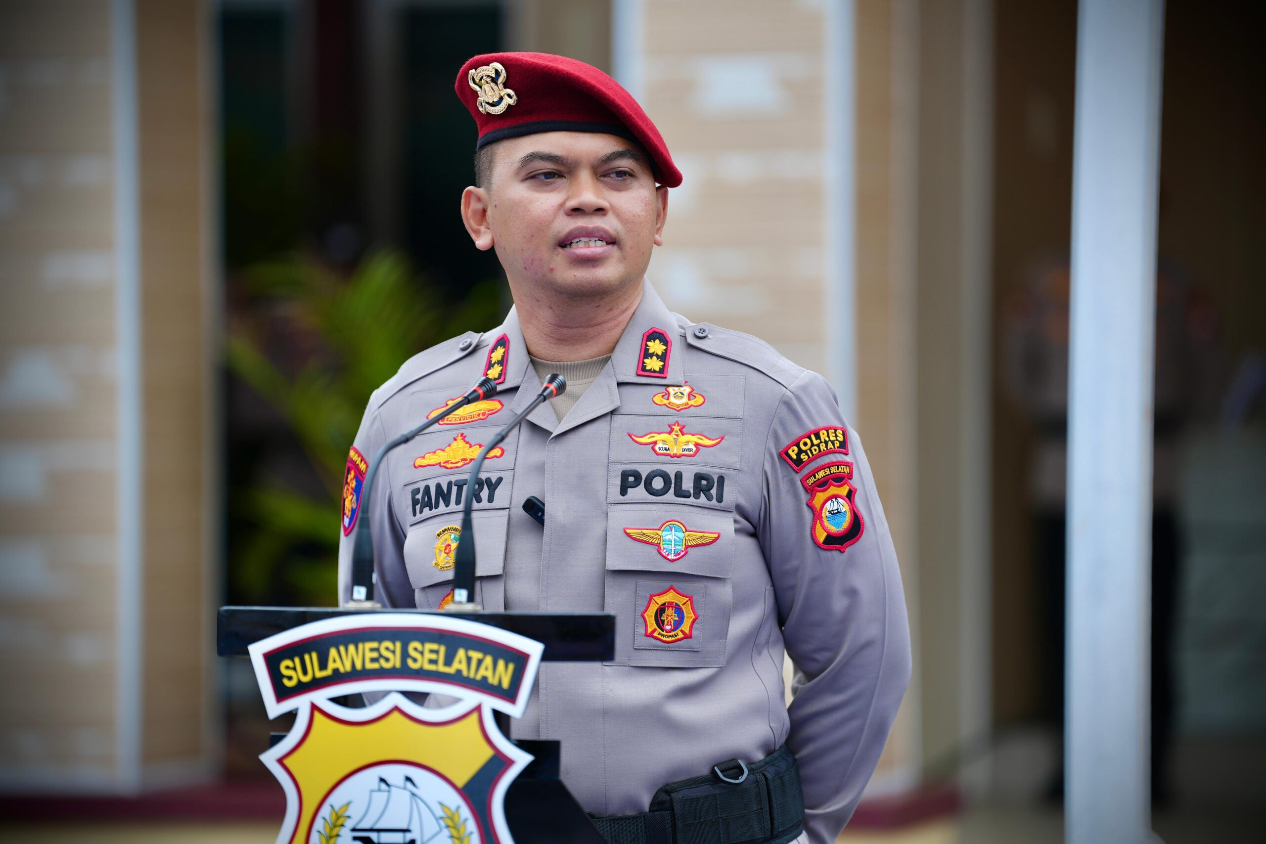 Sidrap – Kepala Kepolisian Resort Sidrap Akbp Fantry Taherong memimpin apel peringatan HUT Reskrim Polri ke 78 Tahun 2025. Kegiatan tersebut dirangkaikan dengan penyerahan penghargaan kepada personel Reskrim Polres Sidrap yang dinilai berprestasi dalam pengungkapan beberapa kasus menonjol yang terjadi di Wilayah Kabupaten Sidrap.