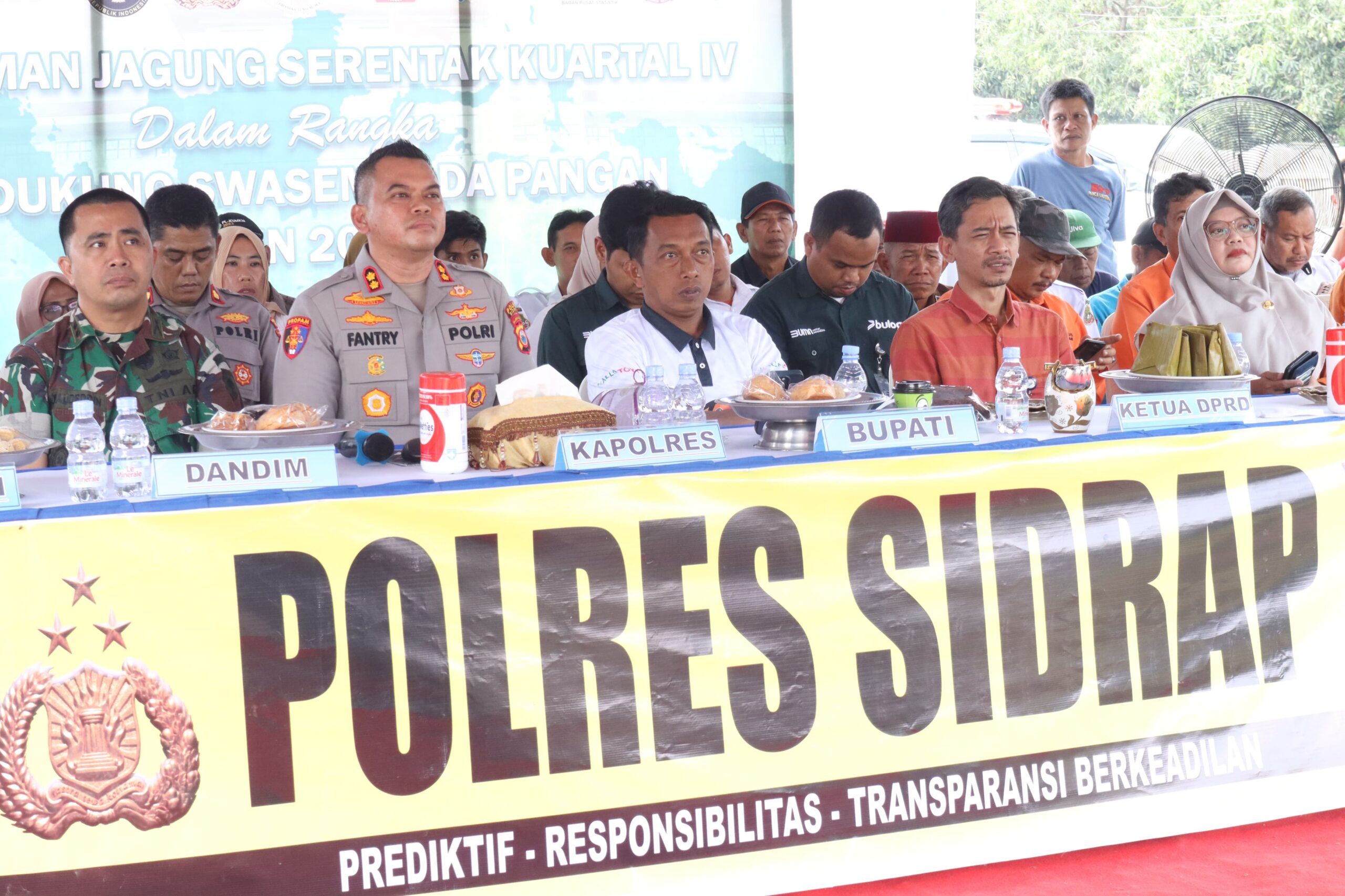 Sebagai wujud dukungan nyata terhadap program pemerintah dalam mewujudkan Swasembada Pangan Tahun 2025, Polres Sidrap bersama unsur Forkopimda melaksanakan penanaman jagung serentak kuartal IV di lahan produktif Desa Corawali Kecamatan Panca Lautang Kabupaten Sidrap, Rabu (8/10/25) siang